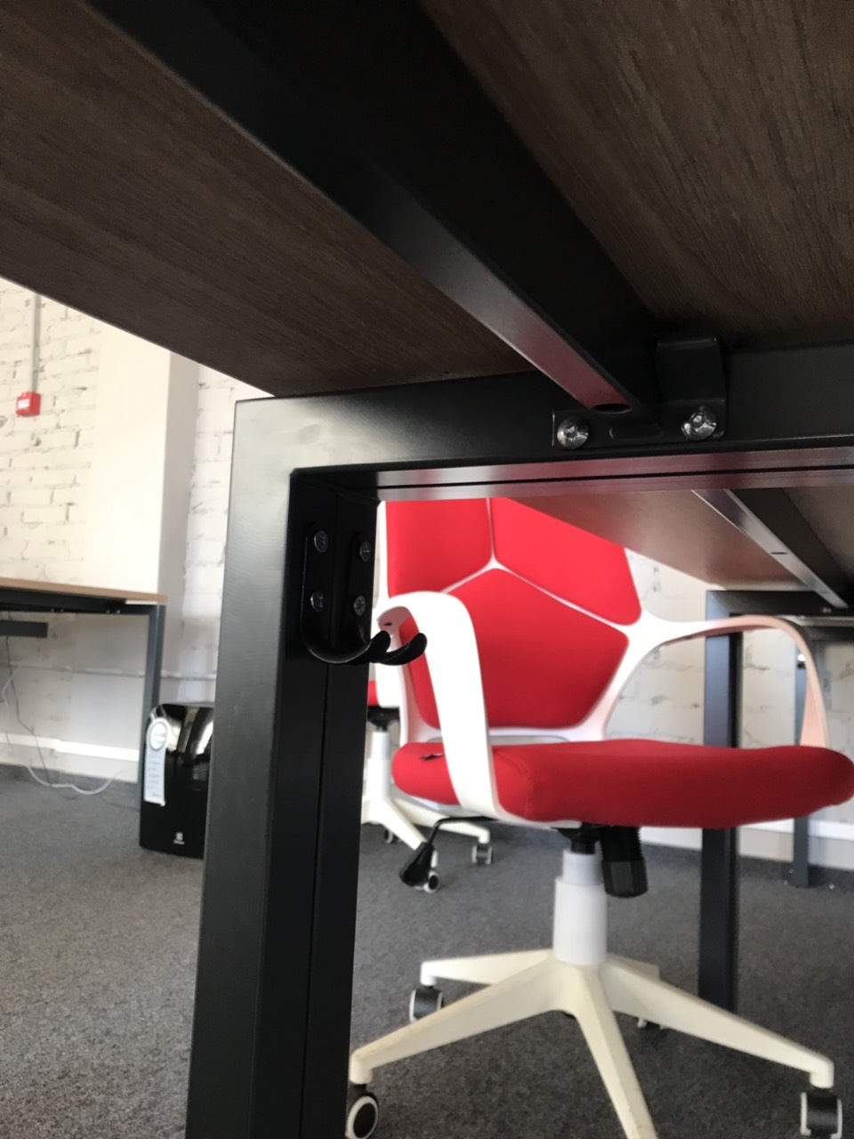 Монтируем к рабочим столам крючки для сумок, цвета черный, белый, серебристый.